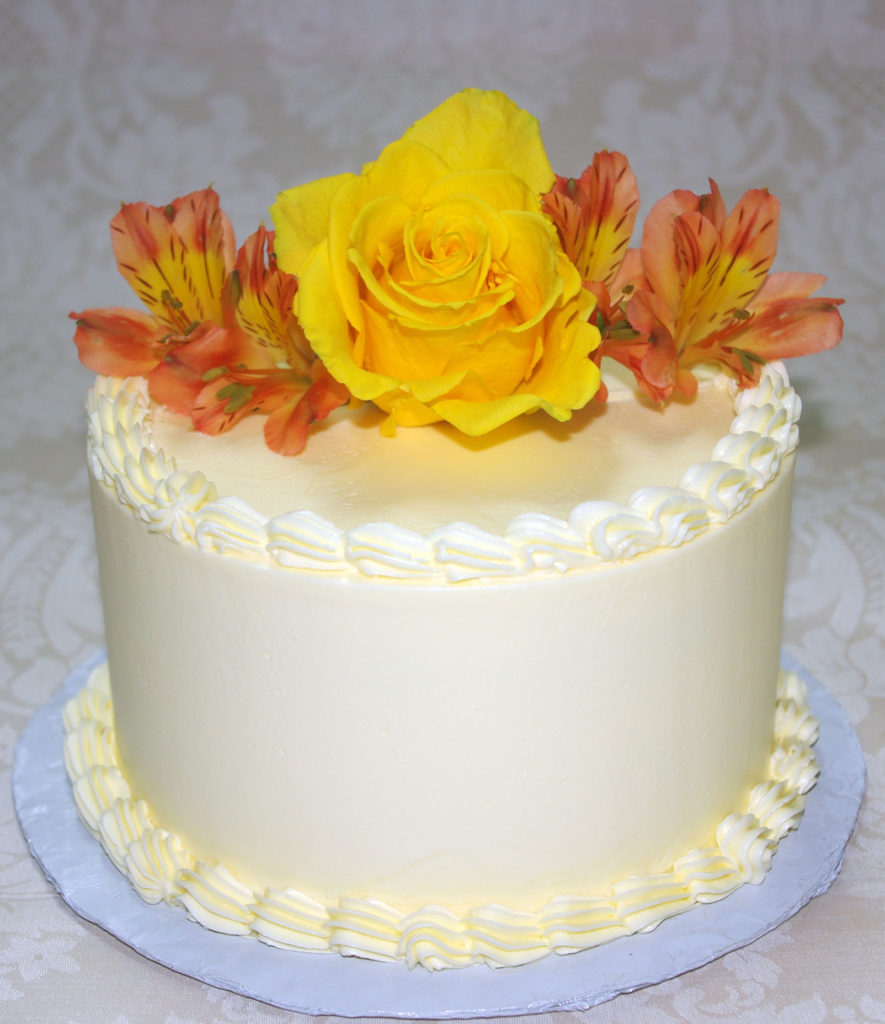 Three layers of golden layer cake filled and frosted with our signature vanilla French buttercream.