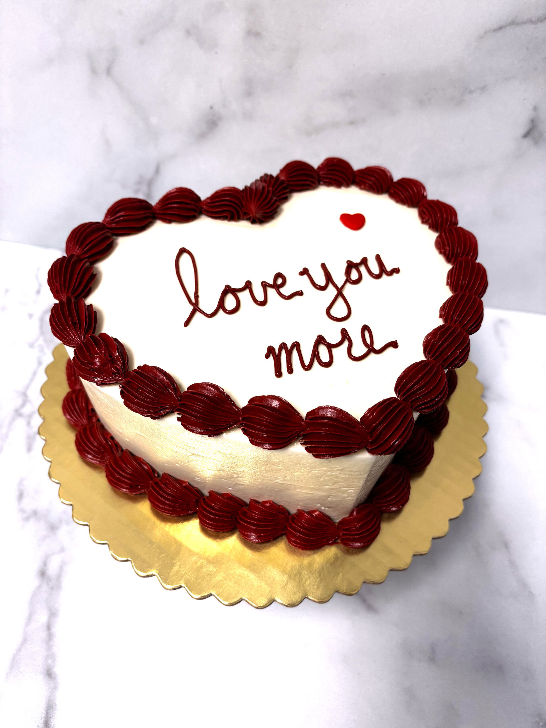 Share this 7″ heart-shape golden cake with cannoli filling with your favorite person! Frosted in our signature vanilla French buttercream and accented with a piped inscription of our choice.